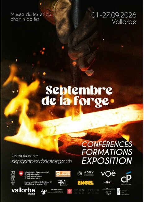 Le Septembre de la Forge est un événement qui aura lieu du 1er au 30 septembre 2026 à Vallorbe, dédié à la découverte et à la transmission des savoir-faire liés au travail du métal. À travers des formations, conférences et expositions, il offre au public – débutants comme professionnels – l’opportunité de se former à différents cours et d’explorer la forge de l’intérieur, de comprendre ses techniques et ses enjeux actuels, et de rencontrer celles et ceux qui font vivre ce métier d’art.